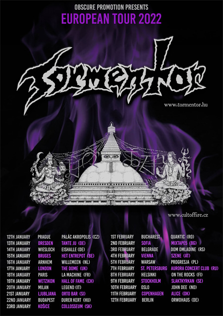 Left Hand Sounds wspólnie z Obscure Promotion prezentują polską odsłonę europejskiej trasy kultowego, węgierskiego Tormentor i czeskiego Cult of Fire. Zespoły planują ruszyć na początku 2022 roku (od 19 stycznia do 13 lutego) na wspólną trasę po całym naszym kontynencie i 5 lutego w rozpisce znajduje się też koncert w stołecznej Progresji.
